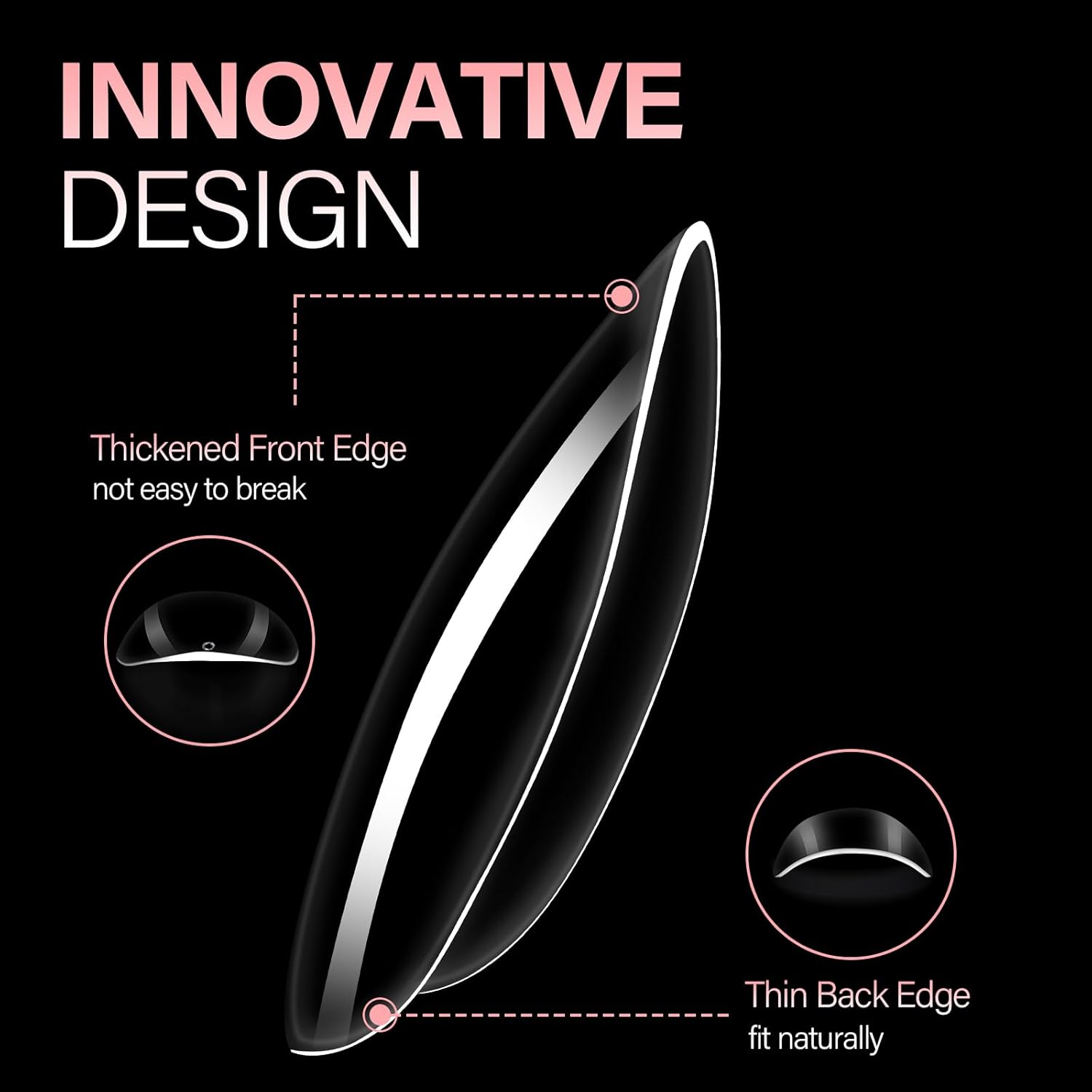 - Natural Fit Effect: Our soft nail tips feature “ Thin back edge, thick front edge”. The thinner back edge can make the full nail tips fit your nails better, which will not make you feel uncomfortable. Also, the clear nails are more breathable, which will not cause burden and pressure on your fingers; The thickened front edge makes it not easy to break or bend, having longer lifespan. Just like your natural nails, do whatever you want!