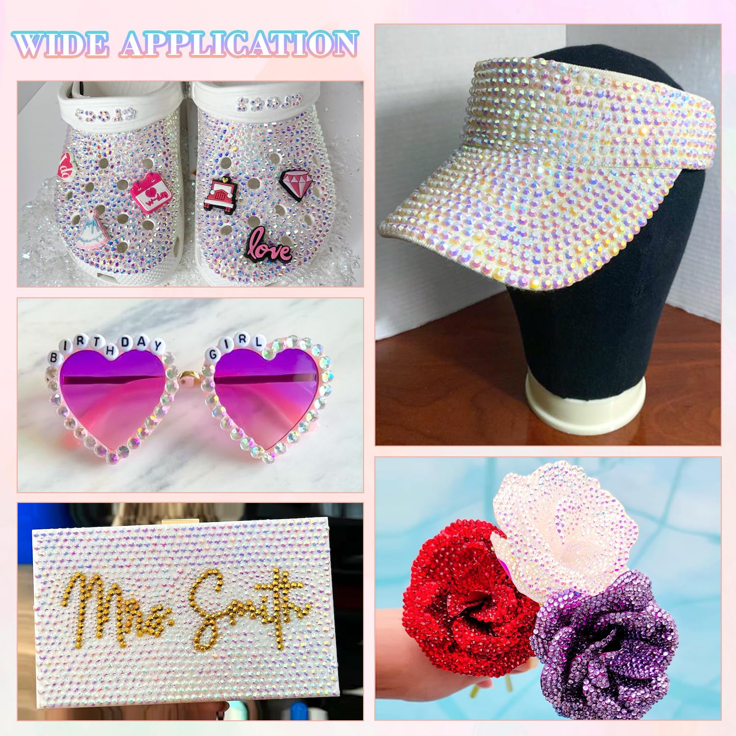 - WIDE APPLICATION -- These sparkling iridescent resin rhinestones are perfect for creating dazzling looks. Use them for bedazzling crafts like shoes, tumblers, mugs, bottles, phonecases, bags, glasses, hats, masks, clothing, clothes or nail art and more