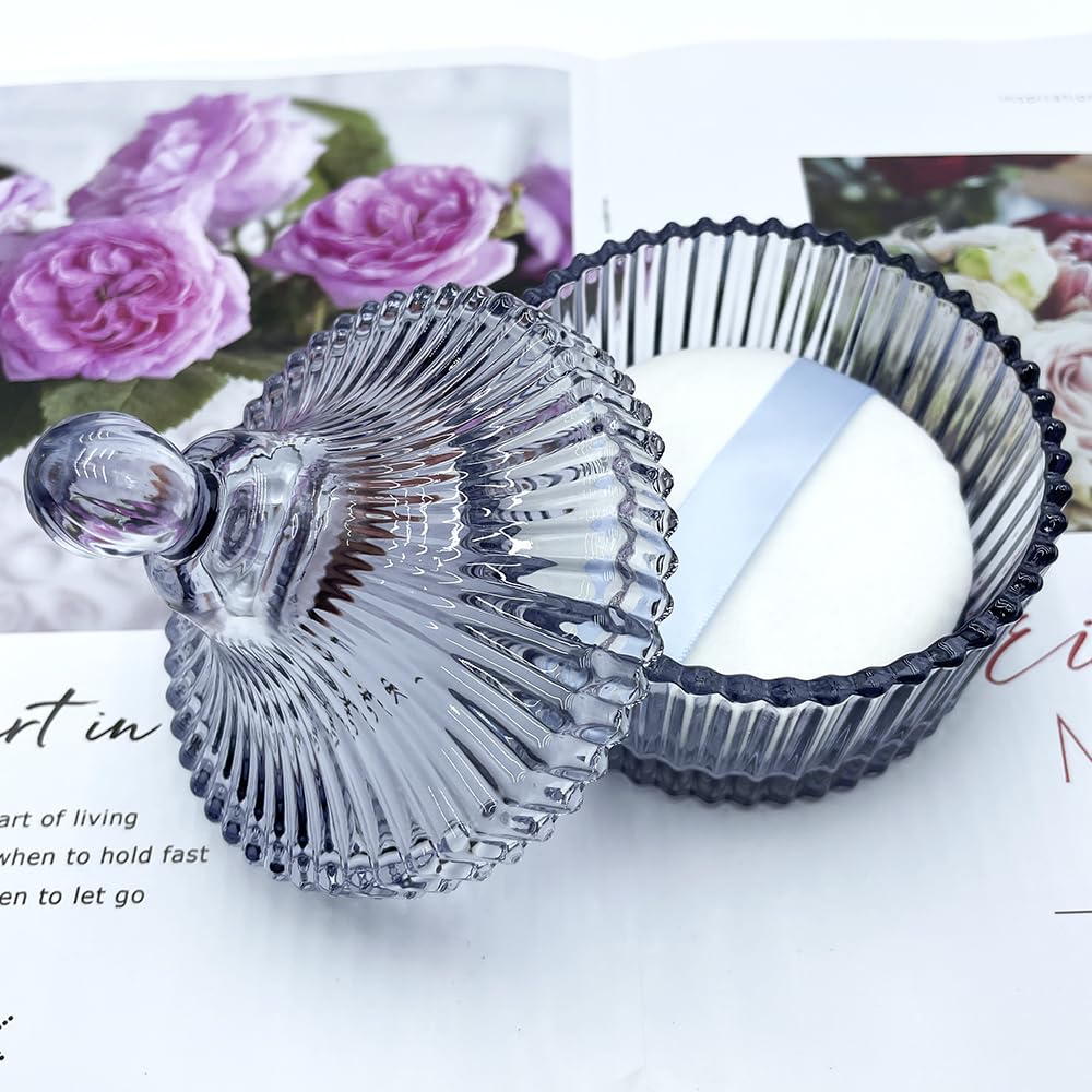 - Exquisite and elegant crystal glass container: The container is made of high-quality crystal glass, with a unique and clever design that reflects a dazzling light in the sunlight.It is not just a powder puff jar,but also a decorative artwork.It can also be used as a container for jewelry,candy,and chocolate