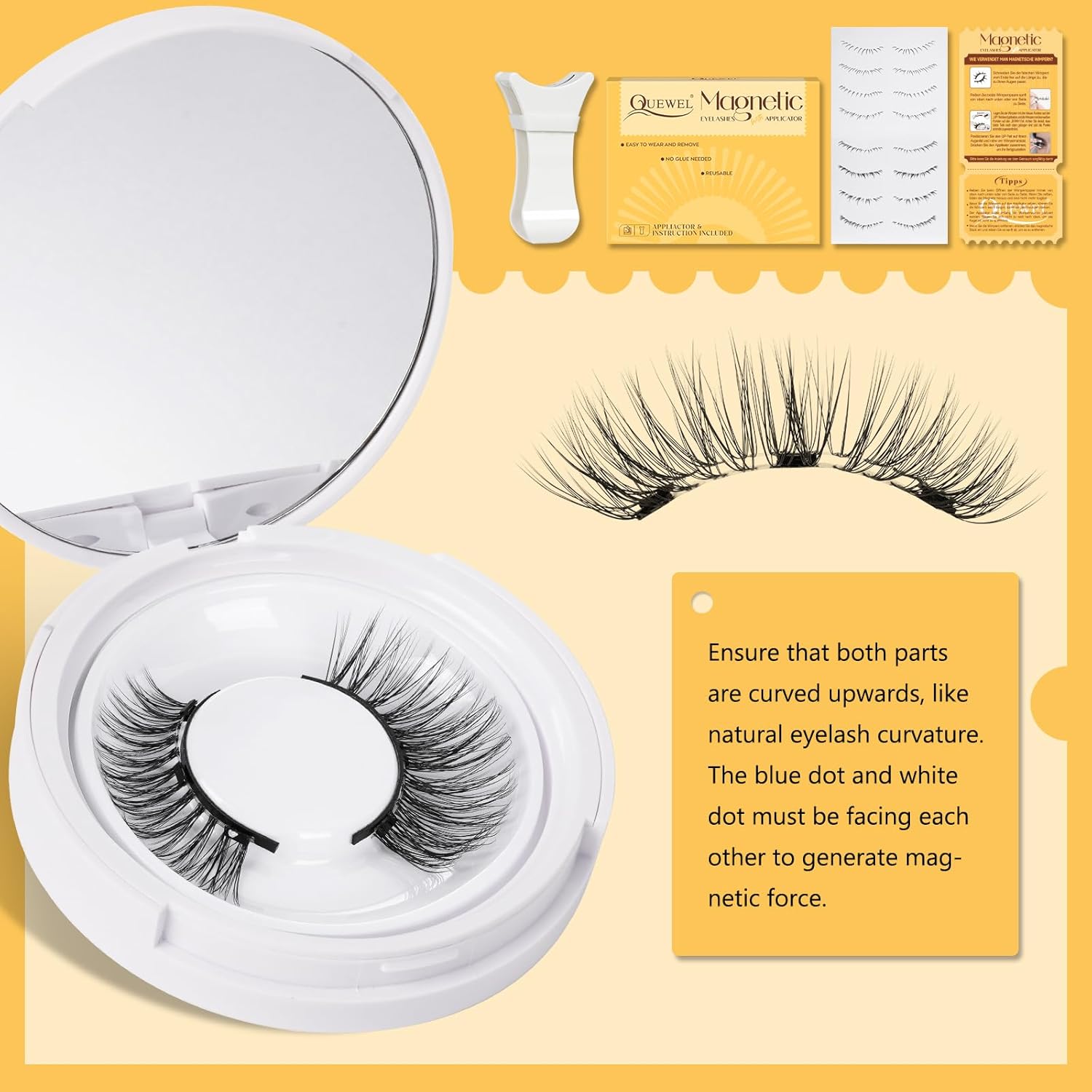 QUEWEL No Glue Needed Eyelashes - Magnetic Lashes Natural Look, Reusable Lashes Kit with Applicator, Easy to Wear and Remove with Instructions
