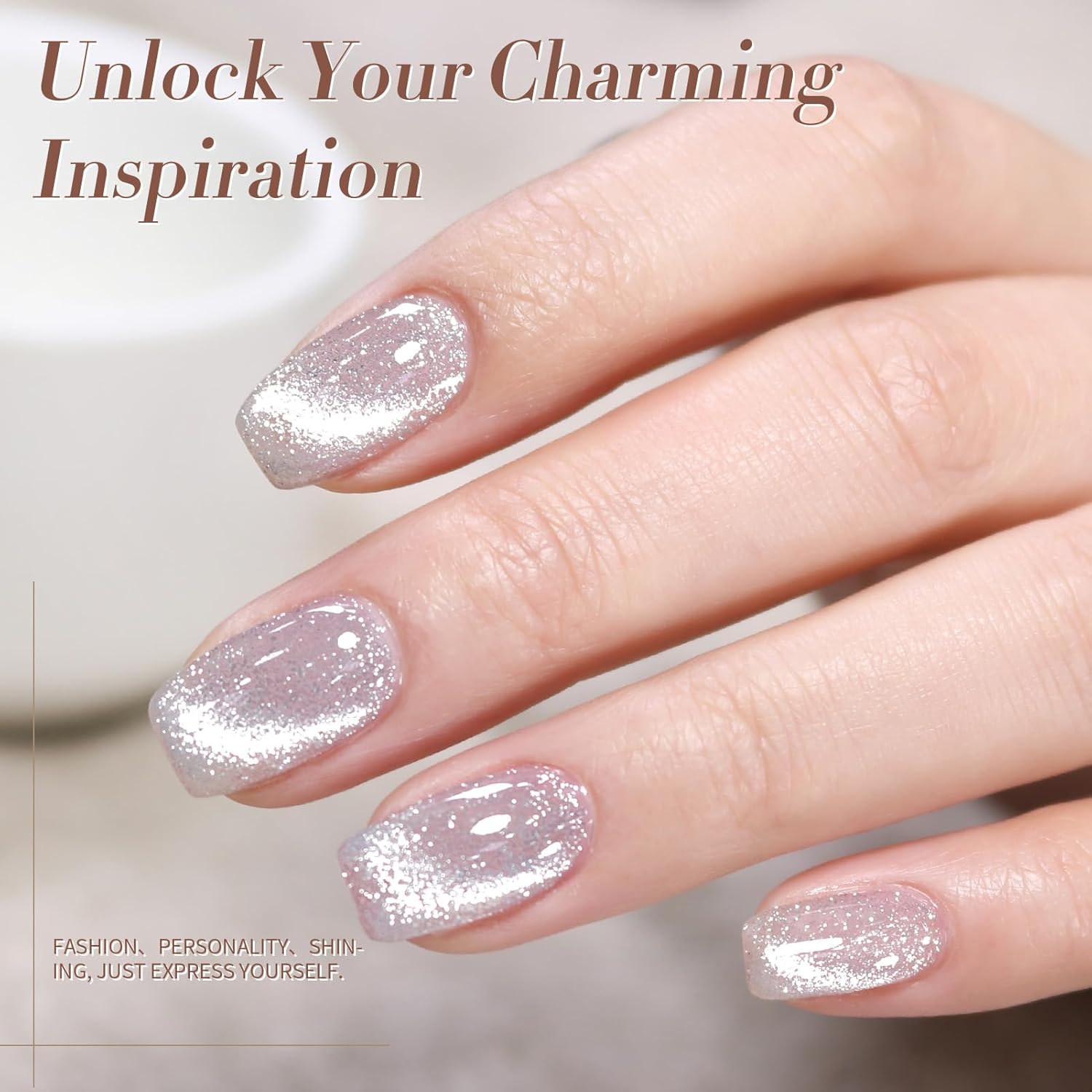 Born Pretty Cat Magnetic Eye Gel Nail Polish Reflective Glitter Gel Polish Red Silver Champagne Gold Glitter Gel Nail Polish 6PCS Set