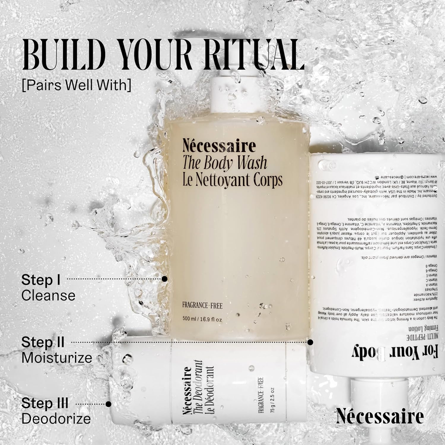 Nécessaire The Body Wash Fragrance-Free. Natural Body Wash for Women + Men. Barrier Cleanse. Multi-Ceramide Gel Cleanser, 16.9 Fl Oz.