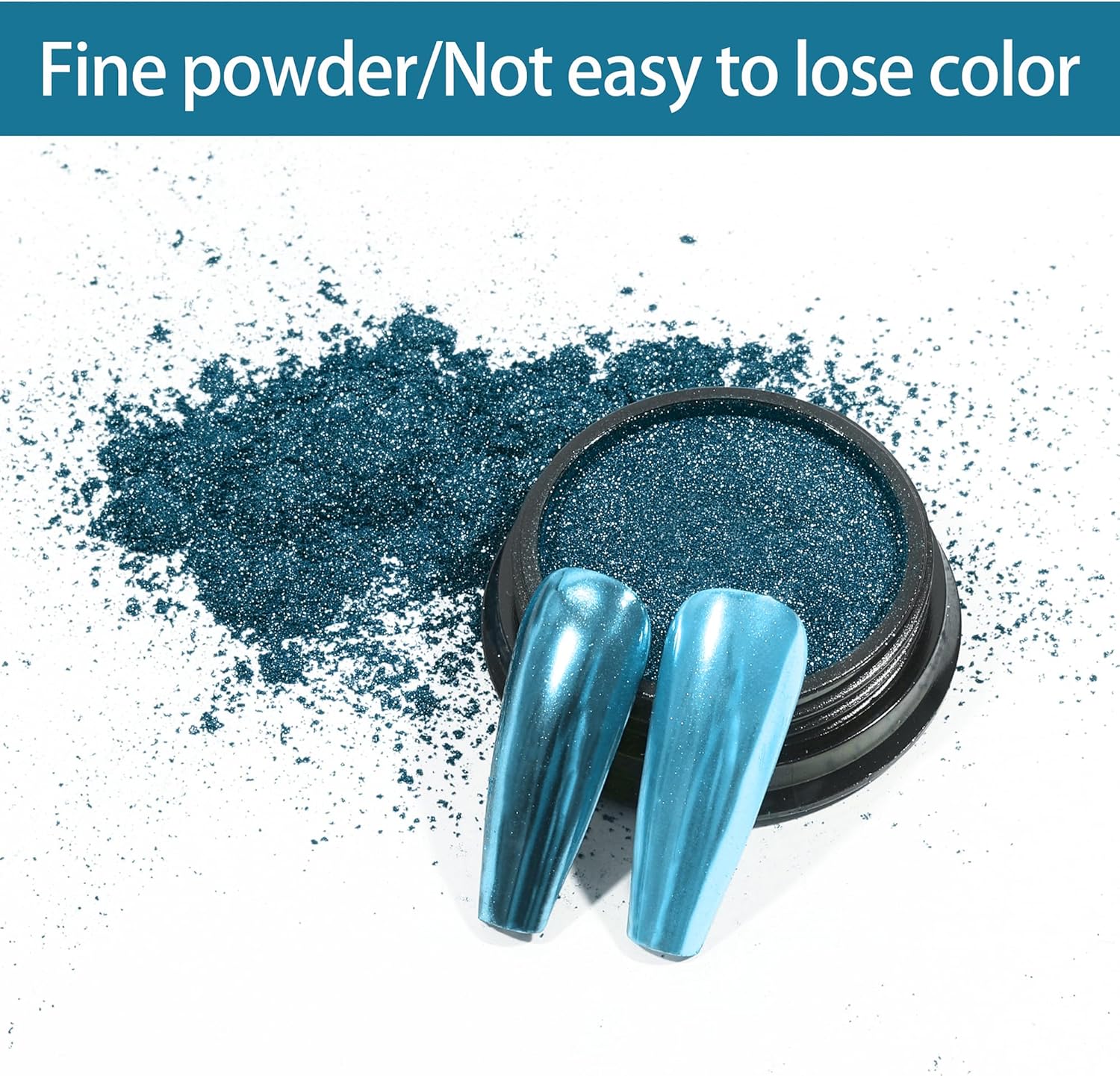 Artdone Chrome Nail Powder, Lake Blue Iridescent Aurora Powder Metallic Mirror Effect Pigment Pearlescent Mermaid Pigment Pearl Glitter Dust Kit, Nail Art Decoration, Resin Craft