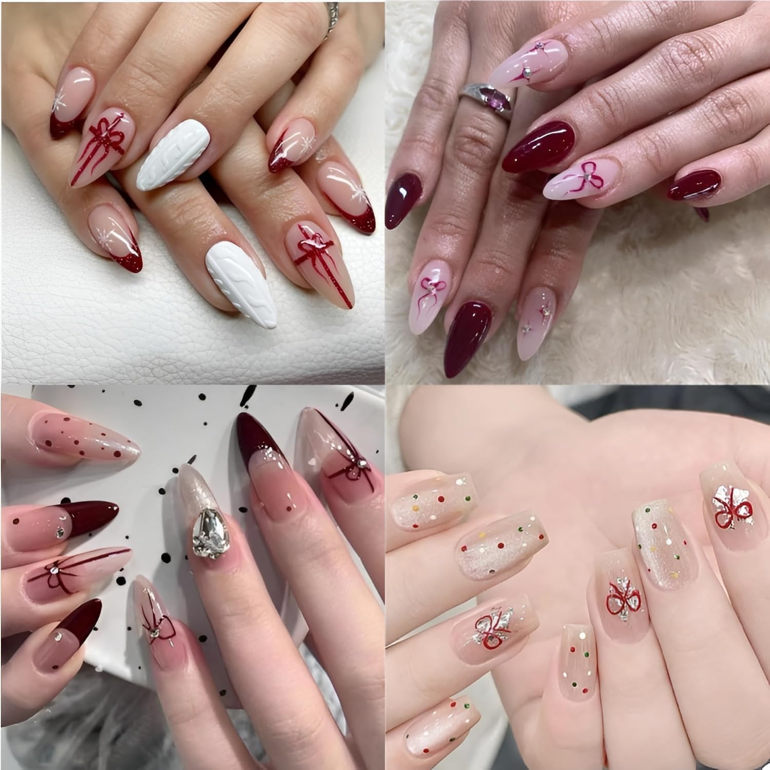 - Bow Nail Art:Bow nail design is fun to DIY nail art with your family or friends when family gathering and party, enjoy your own shiny and special-looking nails, show your charm easily and have a good time