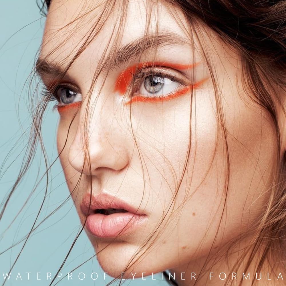 evpct Orange Eyeliner Pencils for Eyes, Orange Matte Colored Eye Liner Pencil Makeup Waterproof Smudge Proof, Colored Gel Waterline Eyeliner Liquid, Face Eye Paint Stick Lipstick Halloween Makeup 04
