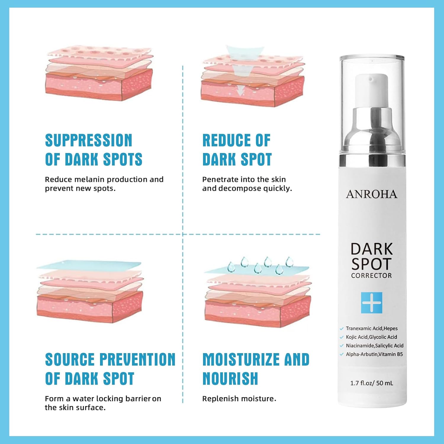 - ANROHA Dark Spot Remover for Face: A multi-functional skincare solution,to target existing dark spots, sun spots, and melasma. This serum focuses on visible spot correction without altering natural skin tone or causing irritation