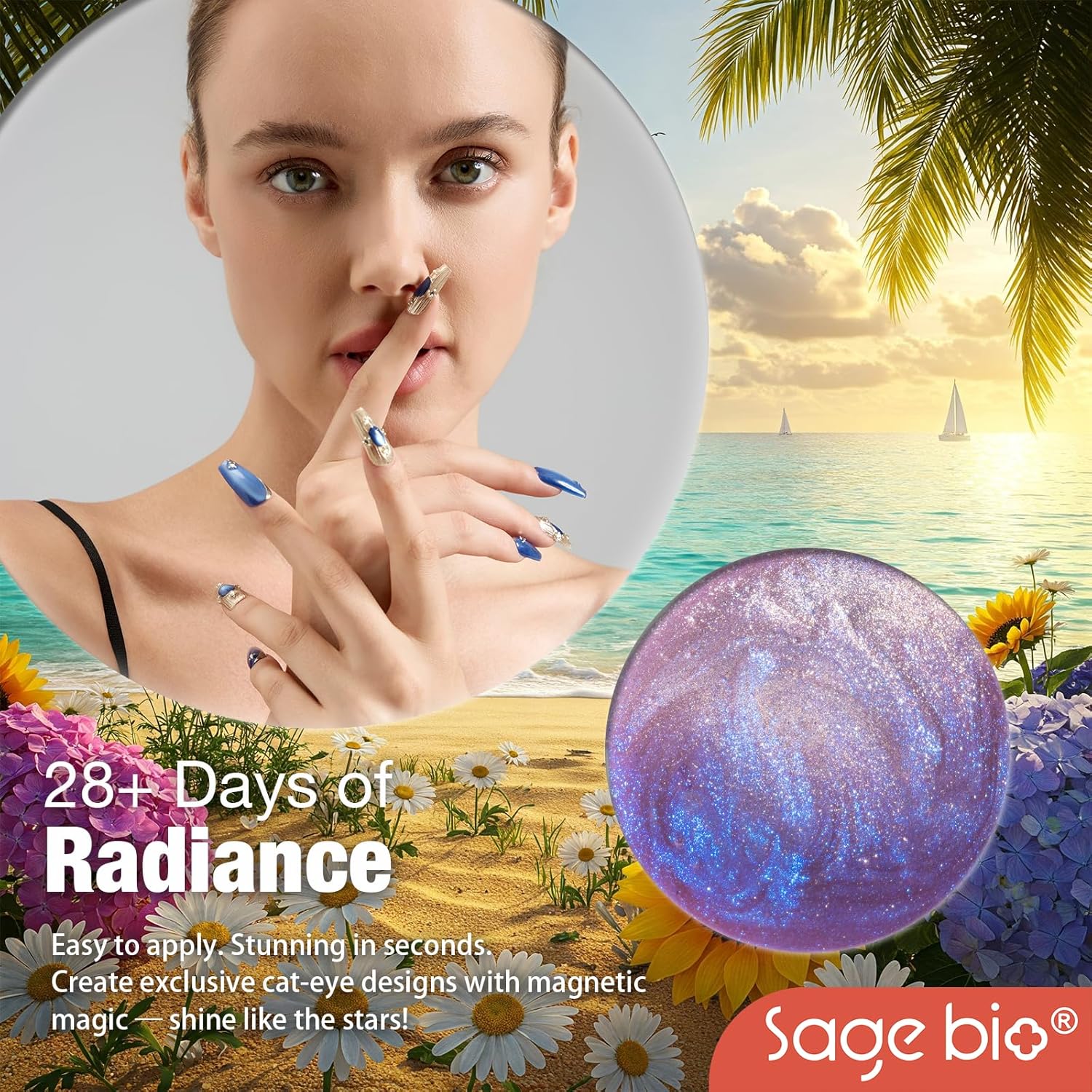 - Captivating 3D Cat Eye Effect: Create mesmerizing, multi-dimensional designs with SAGEBIO's cat eye gel polish. The included magnet stick helps you achieve a dazzling 3D magnetic effect that shifts beautifully with light.