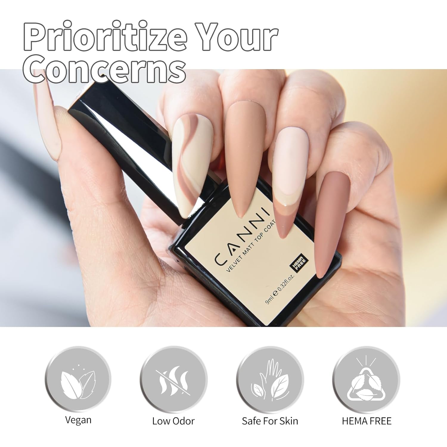 CANNI 2 Pcs No Wipe Matte Top Coat and Glossy Gel Top Coat Set- High Shiny Long Lasting Clear Gel Nail Polish Kit, Soak Off Nail Art Home and Professional Manicure