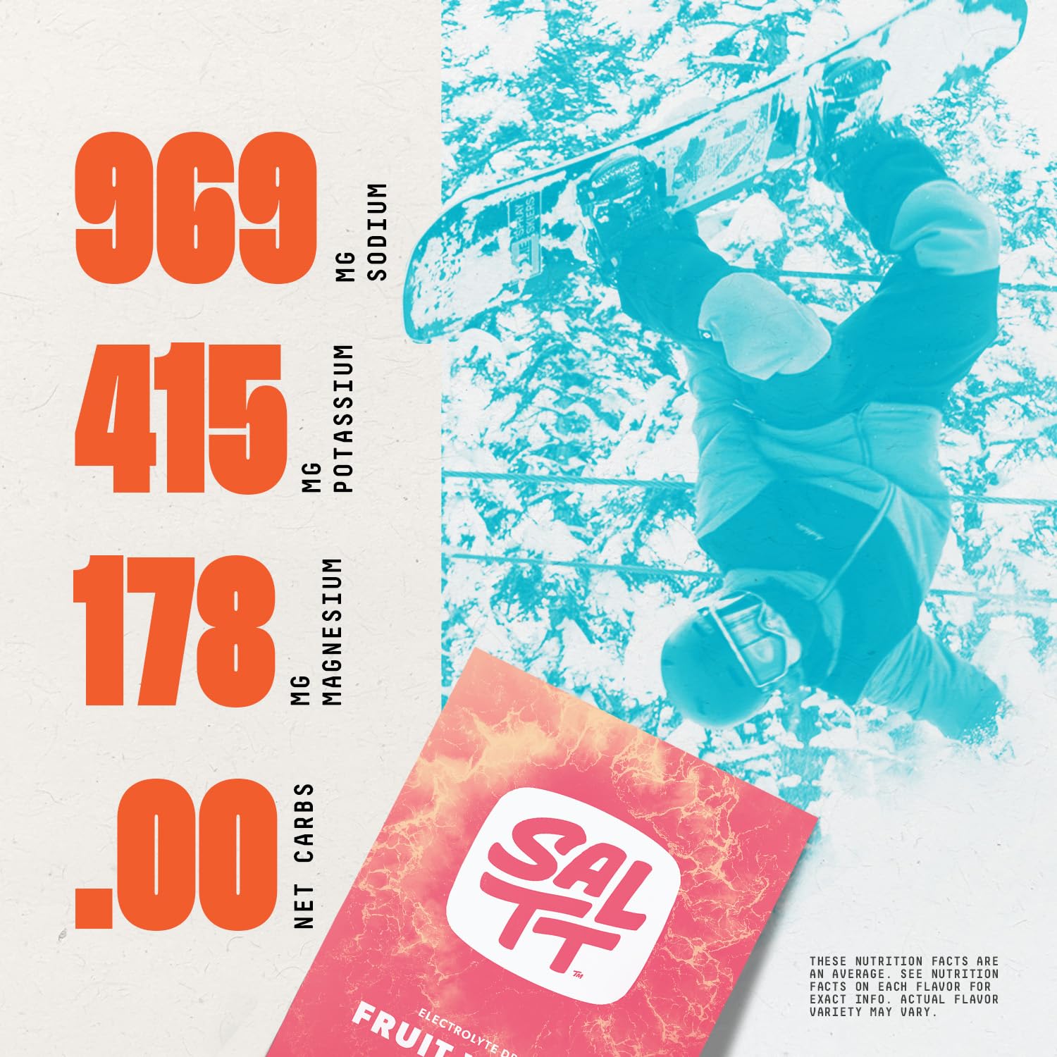 - Everyday Hydration: From the boardroom to the surfboard, SALTT electrolyte powder supports your lifestyle with the energy you need. No artificial flavors or sweeteners. Just pure electrolytes. Enjoy fruit-tastic flavors in one convenient variety pack!