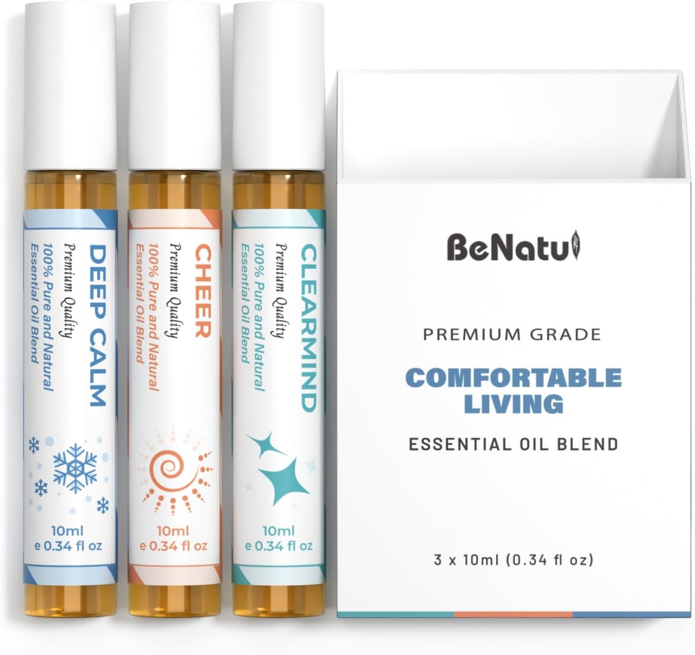 Essential Oil Set (Deep Calm, Cheer, ClearMind), Aromatherapy Roll On Blends for Massage, Body Care & Home Use, Great Fragrance Roller Gift for Men & Women