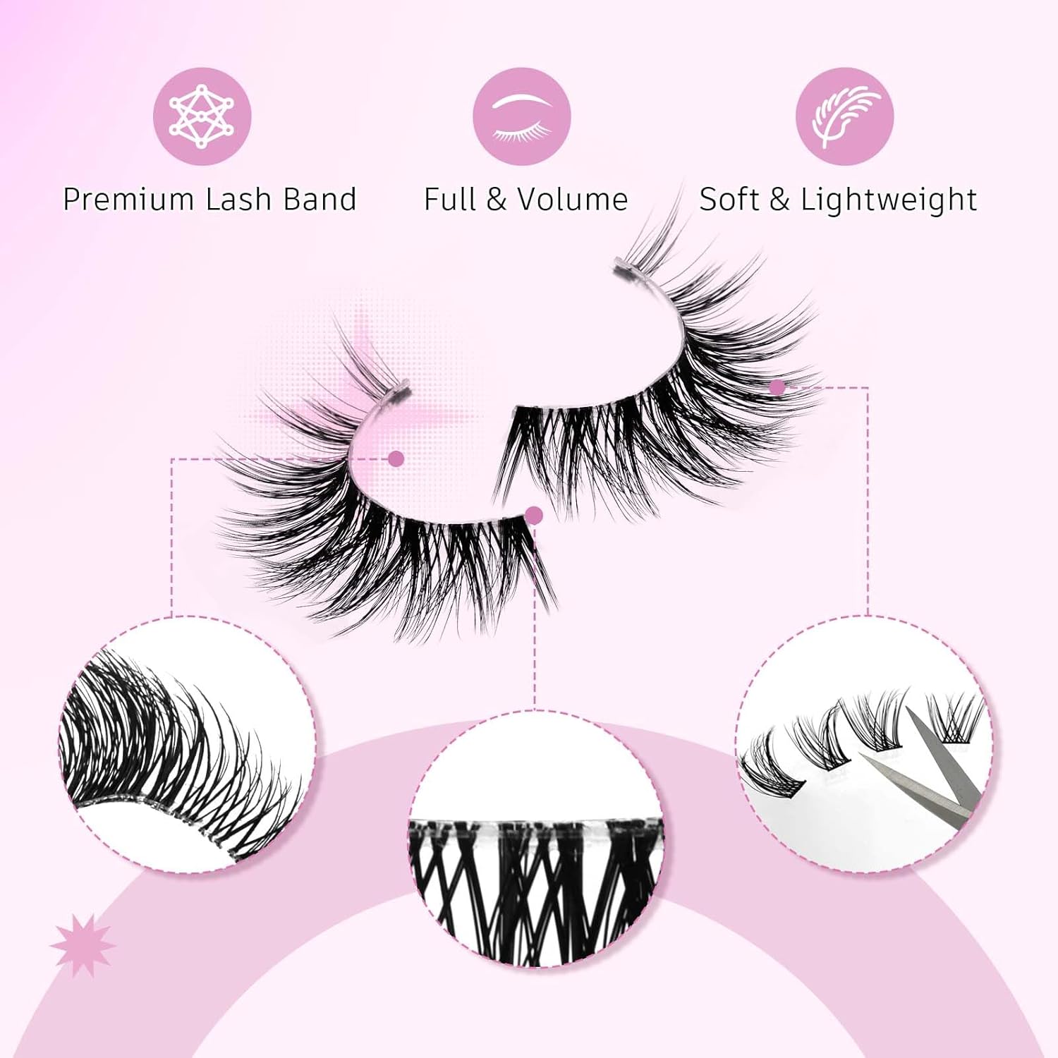 - 【THIN BAND DESIGN】: Specially designed thin lash band. Not only does it make your eyes look natural when you wear fake lashes, but it also puts less pressure on your eyelids and improves your wearing comfort.