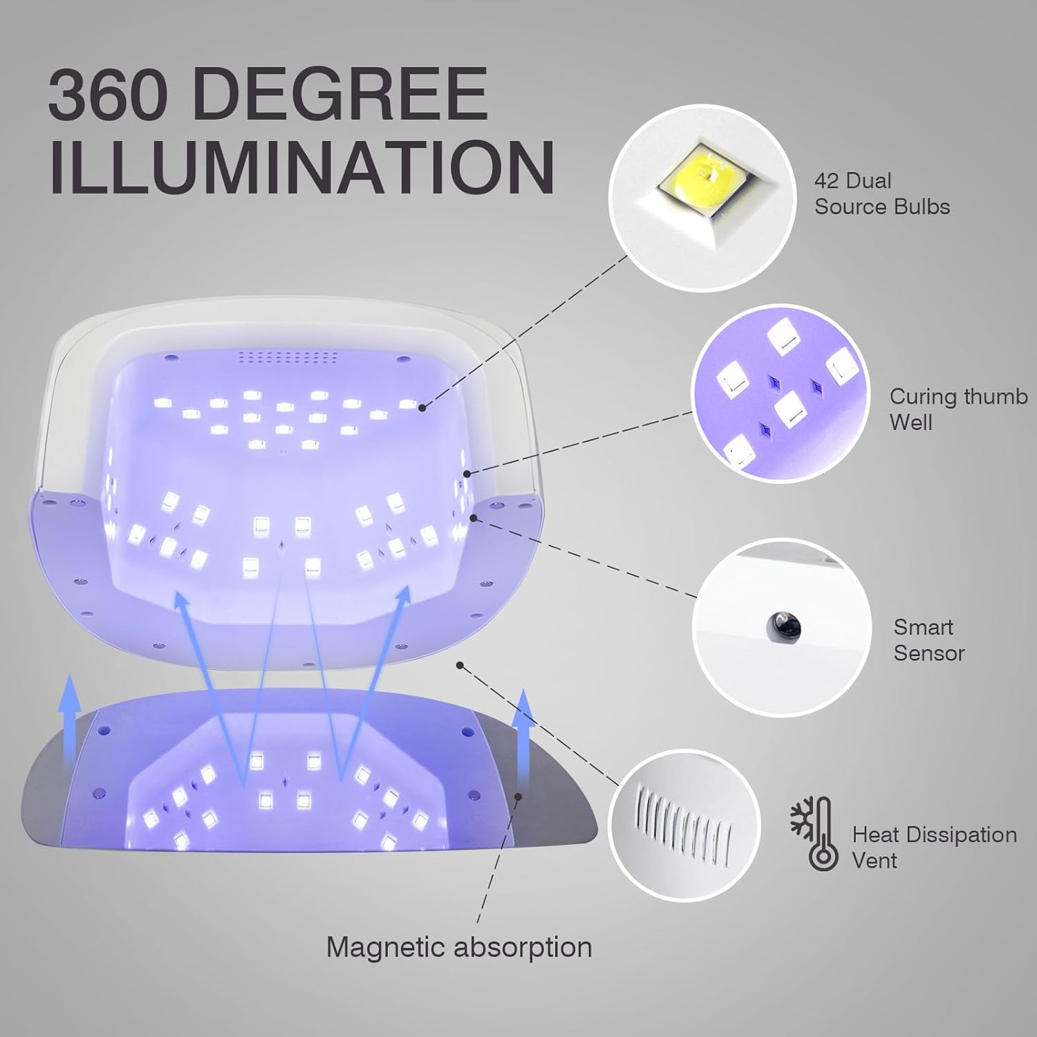 - Cordless UV Nail Lamp: Power your nail artistry with this 60W cordless gel nail lamp featuring 42 UV LED bulbs for complete coverage; Experience burn-free curing with skin-safe low-heat illumination