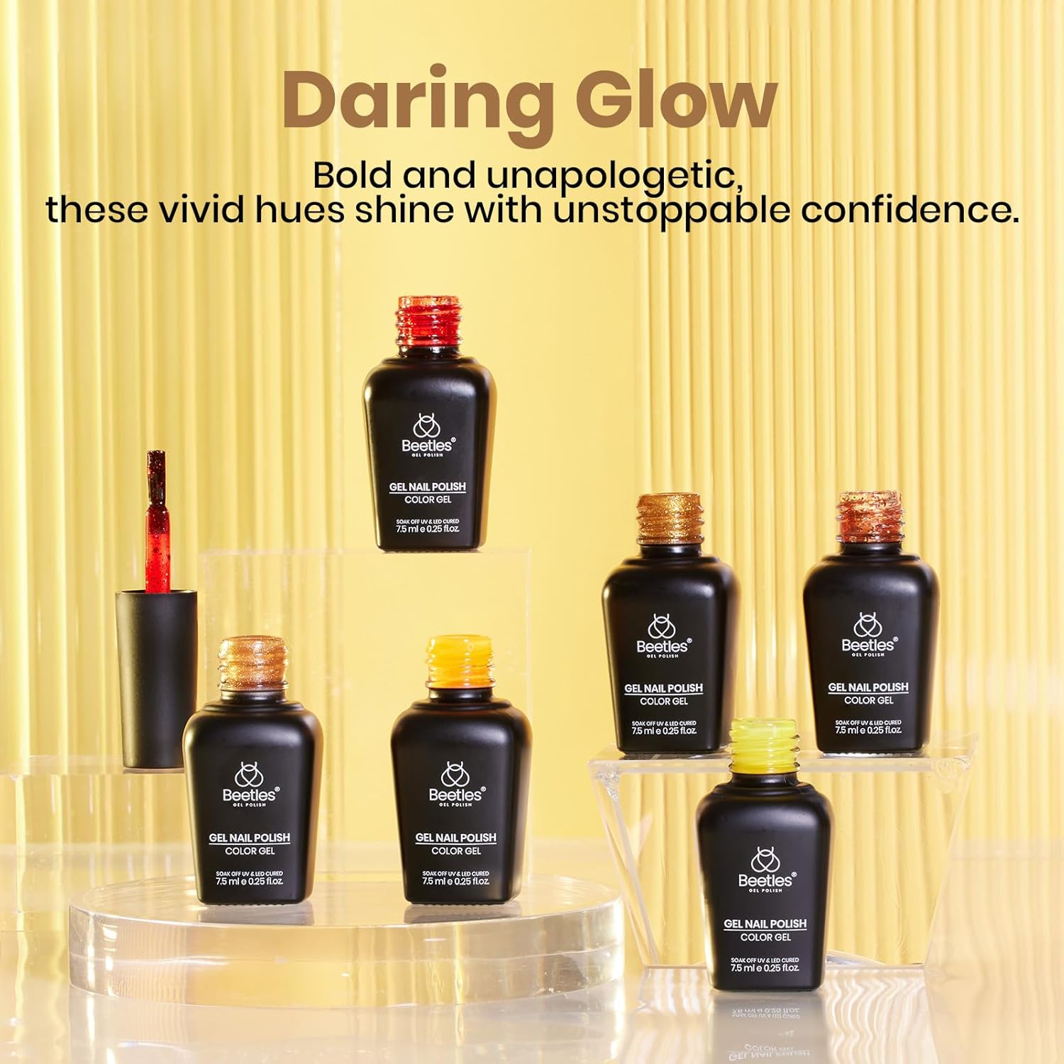 beetles Glitter Gel Polish Set - Daring Glow Collection, Gold Cat Eye Gel Colors Red Gold Glitter Shimmer Yellow Orange Christmas Nails Art Soak off Uv LED Manicure Nail Trend Gift for Women