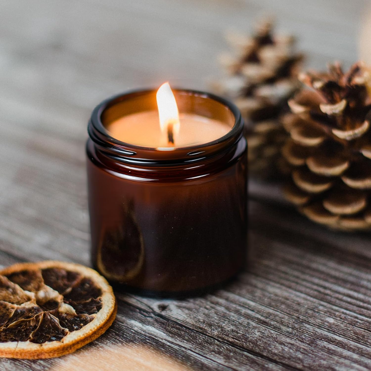 4 oz Glass Jars with Lids, Hoa Kinh 40 Pack Amber Small Glass Jars with Black Lids Empty Cosmetic Containers Airtight Round Glass Jar for Lotions, Powders and Ointments