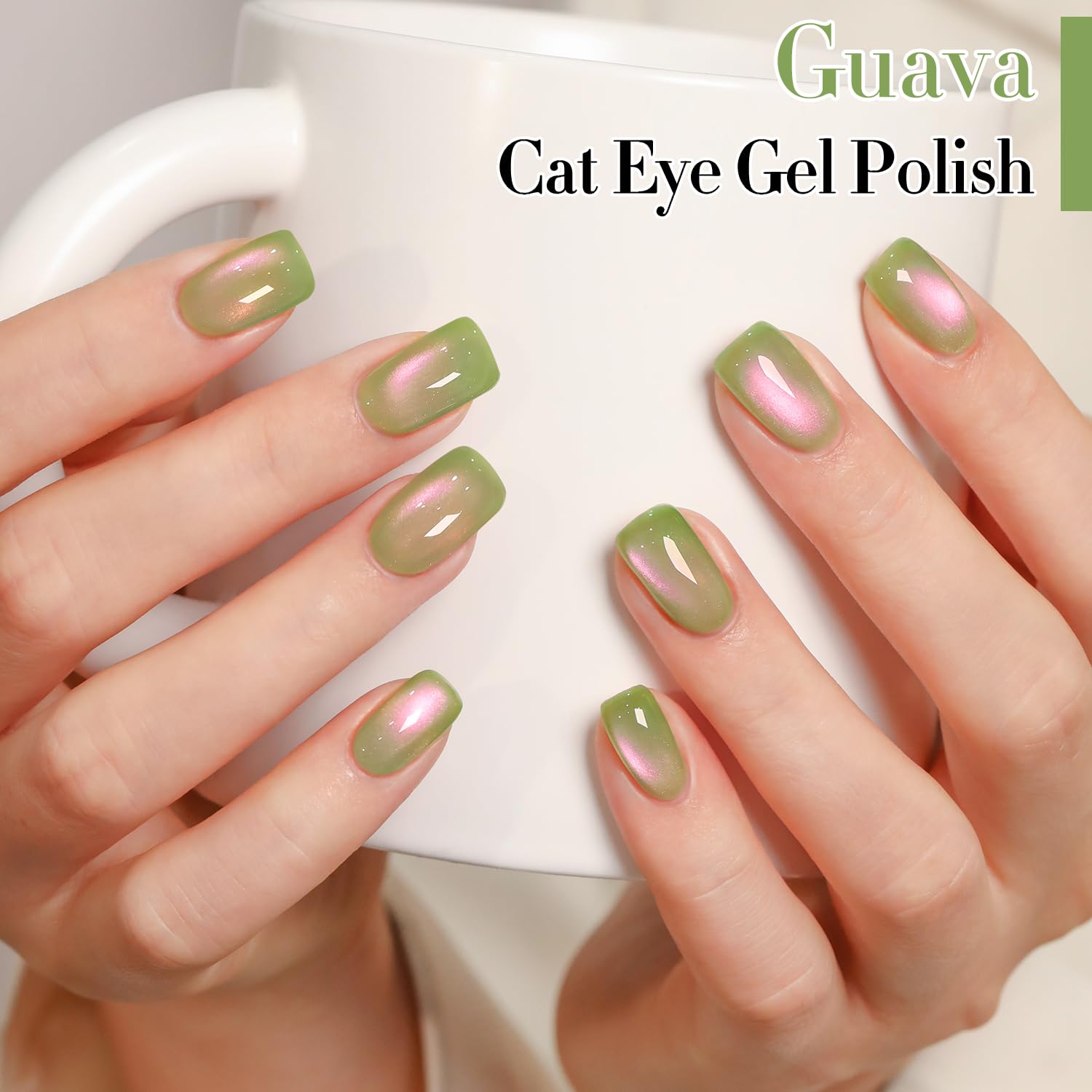- Cat Eye Gel Nail Polish : Double Rhythm cat eye gel nail polish kit includes 1 color 15ml / 0.5 fl.oz gel nail polish. The cat eye gel can be combined with different bacse colors arbitrarily, you can get different colors nail art.You can use different base coat to creat different sytles.