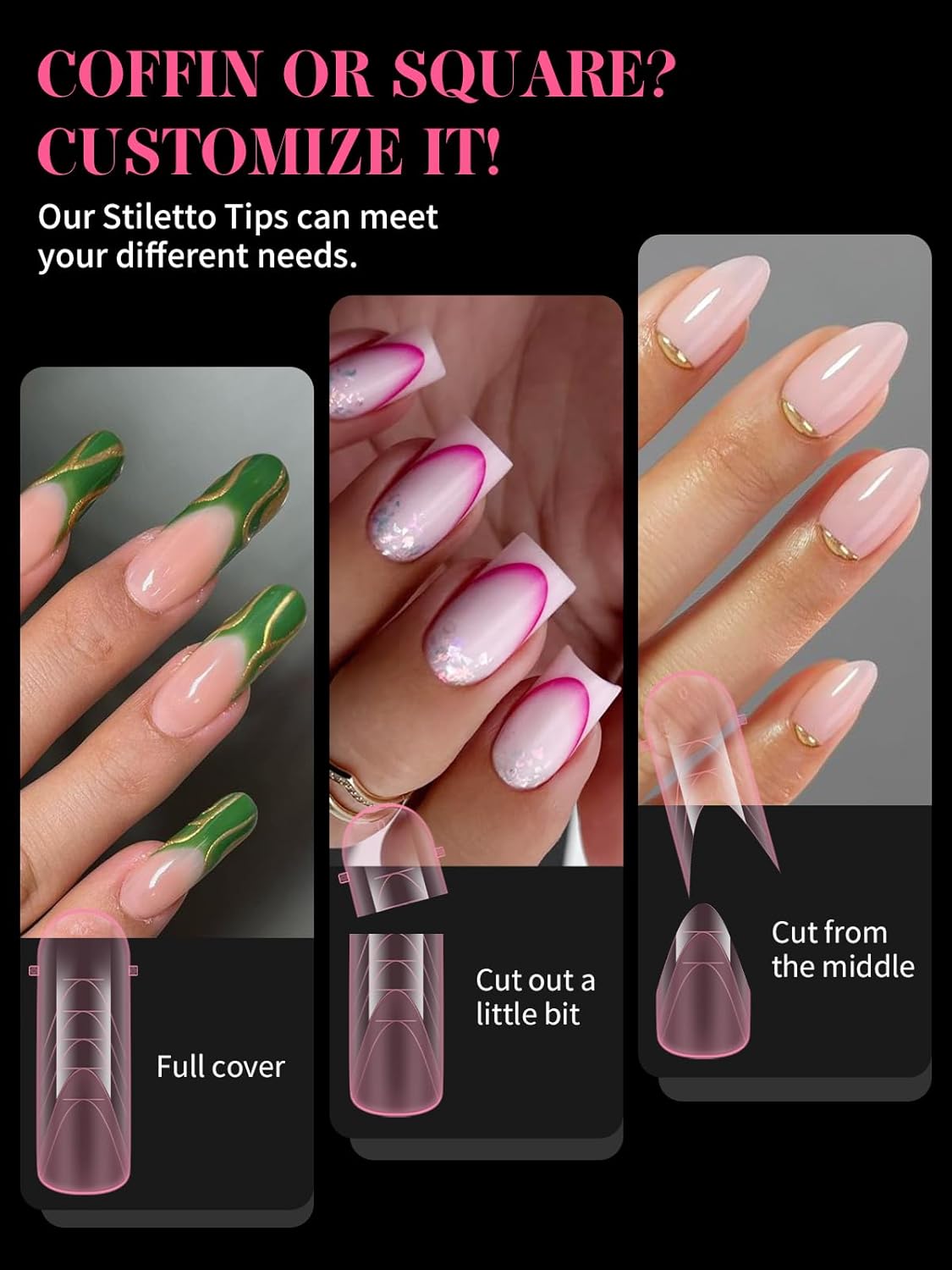 - 【Sturdy No C Curve Gel Nail Forms】Reusable extra long nail molds are made with high quality material, which is strong, tough, and reusable, providing you with a different lengths nail art experience that lasts.This artificial nails forms protective sleeve has a small handle on both sides, which is convenient for constructing gel nail extension nails, and will not stick to your hands, and can be easily removed after application.