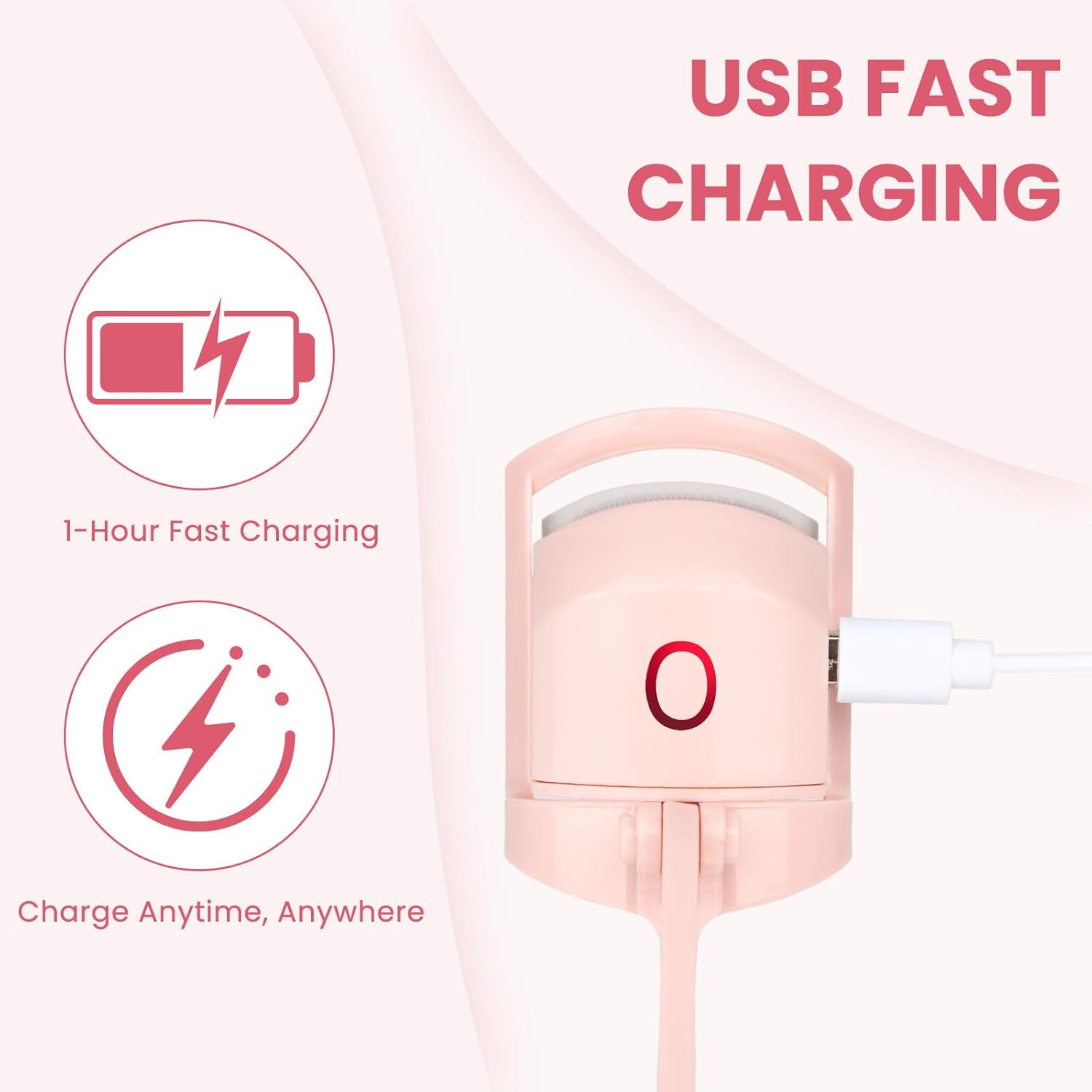 - USB Rechargeable: Recharge your electric eyelash curler via USB, allowing you to charge anytime, anywhere. The green light flashes when the battery is low, the red light indicates charging, and it turns off when fully charged. A full charge allows for multiple uses.