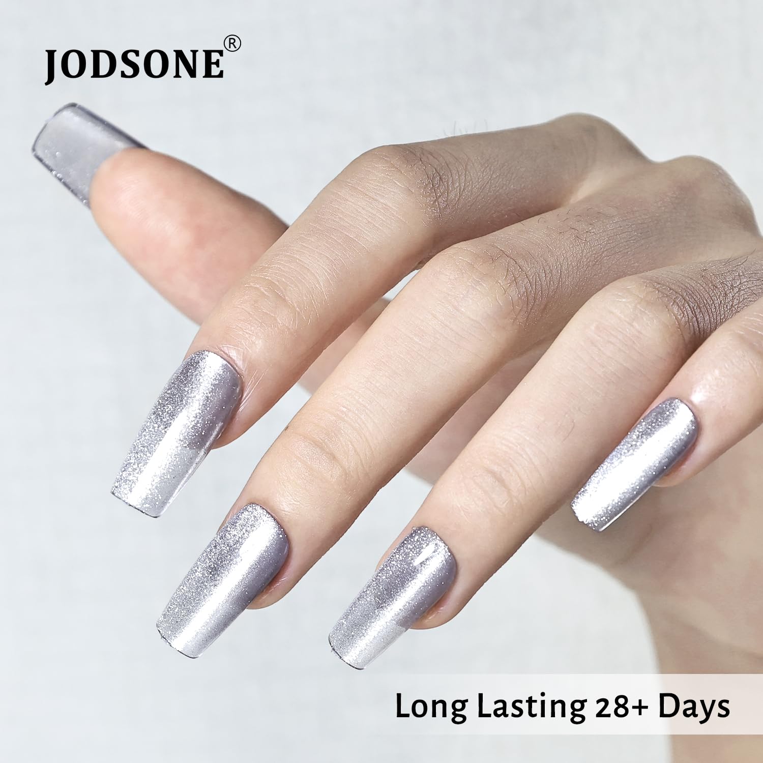 JODSONE 16.5ml Cat Eye Gel Nail Polish Silver for Holographic Glitter Cat Eye with Magnet Need U V Curing