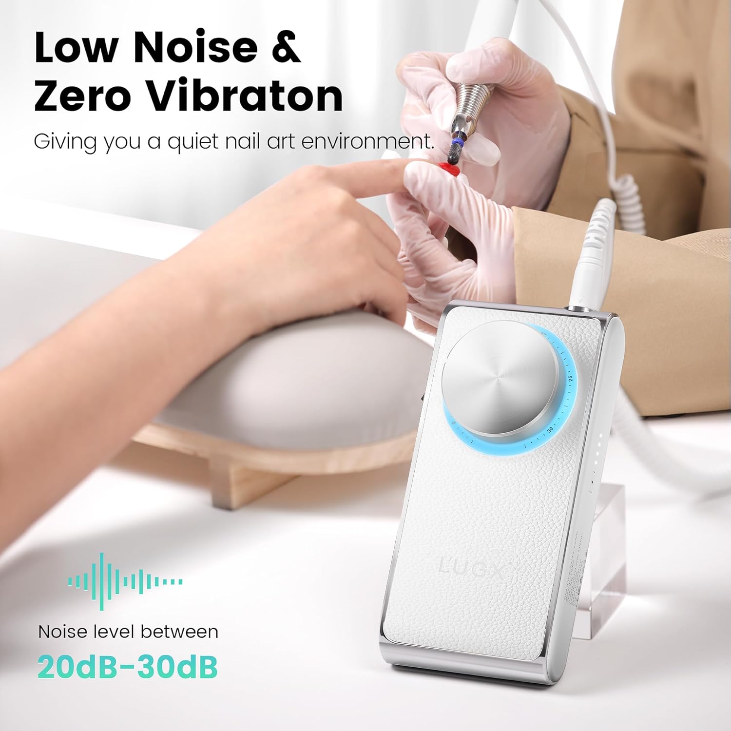 L'UGX Professional Nail Drill 30000RPM, Cordless Rechargeable Electric Nail File for Acrylic Nails Gel Polishing, Efile Nail Kit for Manicure Pedicure, Low Noise Low Vibration, 7Pcs Drill Bits, White