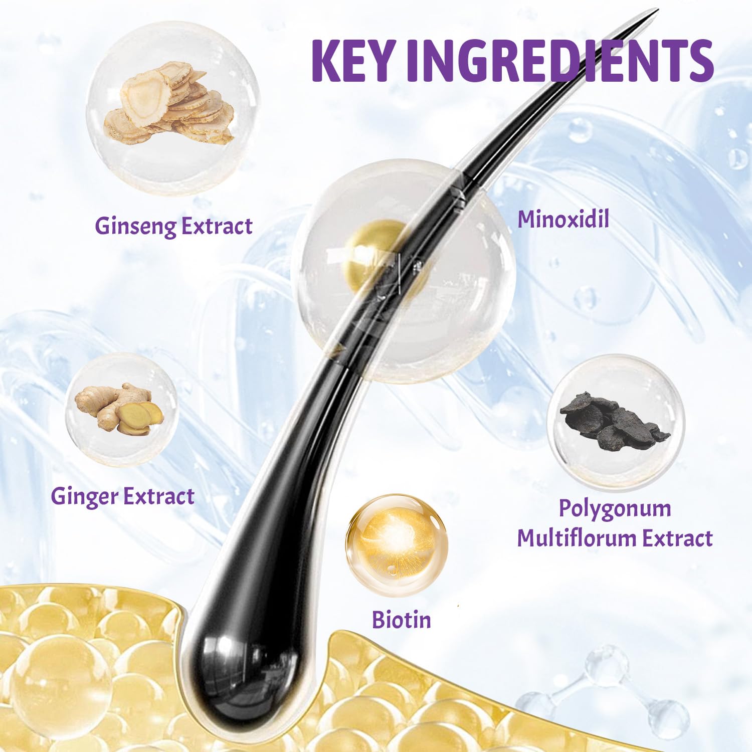 - Powerful Blend of 5% Minoxidil: This advanced formula features 5% Minoxidil, a clinically proven ingredient known to reduce hair thinning and support healthy follicle function.