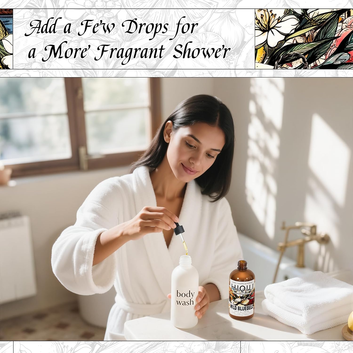 HIQILI Wild Bluebell Fragrance Oil for Candles, Soaps Making, Inspired by J-M.Lone Wild-Blubell, and More DIY Projects, Diffuser, Green Scents for Closets, Drawers - 5.07 Fl Oz