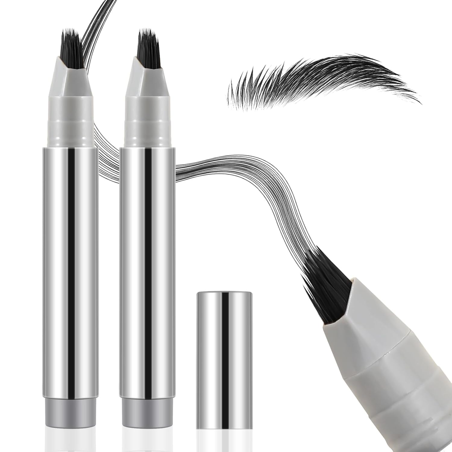 Boobeen 2pcs Brow Fection Eyebrow Pen,Liquid Microblading Eyebrow Pencils for Women,Angled Brush Waterproof Brow Pen for Hair-Like Strokes,Last All-Day,Beginner Friendly