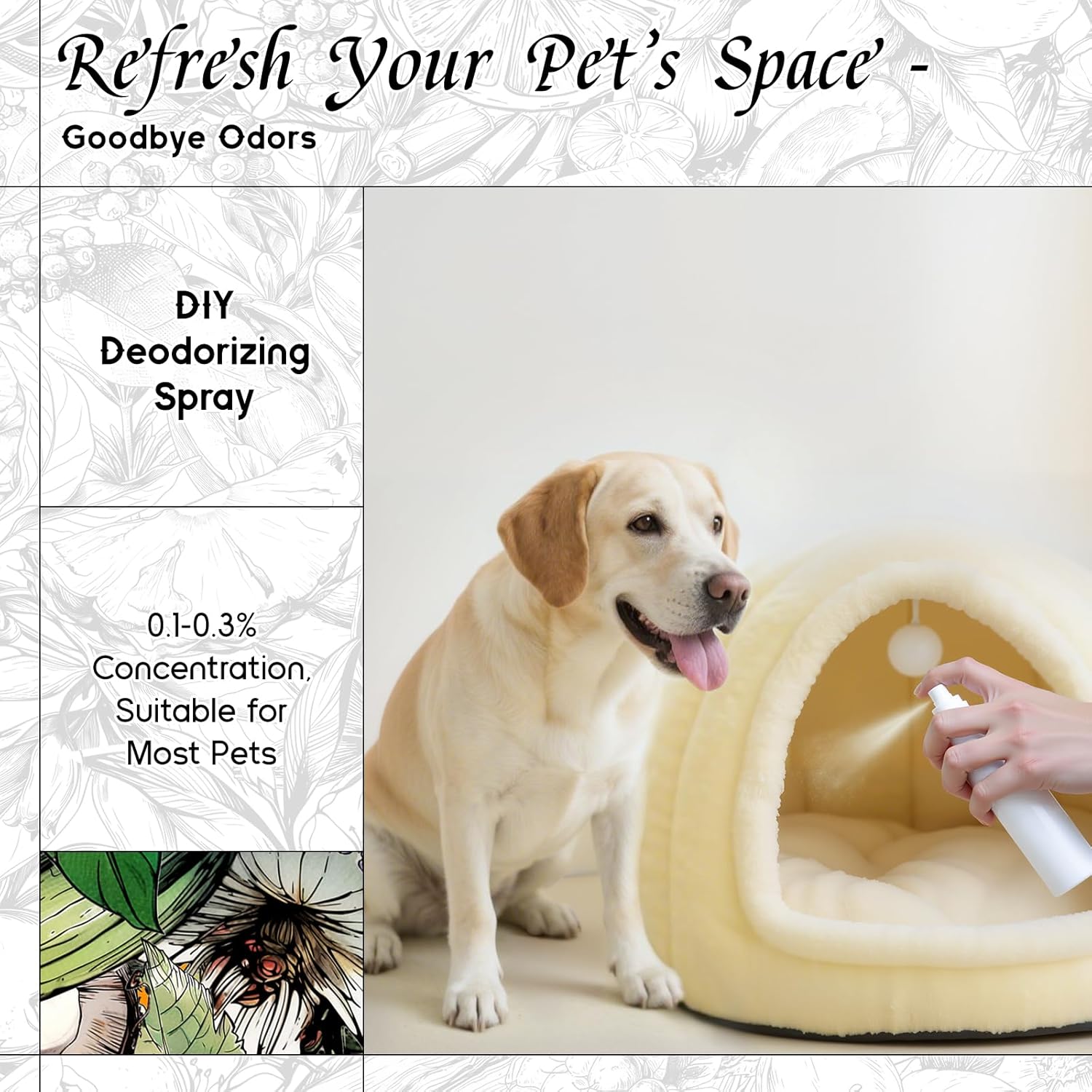- Pet-Safe Formula – Gentle enough for DIY pet home mist and pet sprays. Free from harsh ingredients, it neutralizes odors without risking your furry friends’ health