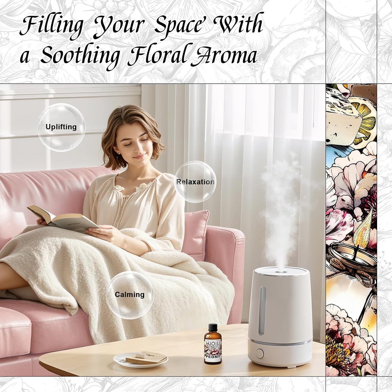 HIQILI Peony Fragrance Oil for Home Diffuser, Idea for Making Candle, Women's Perfume, Car Air Freshener, Skin & Body Care - 1 Fl Oz