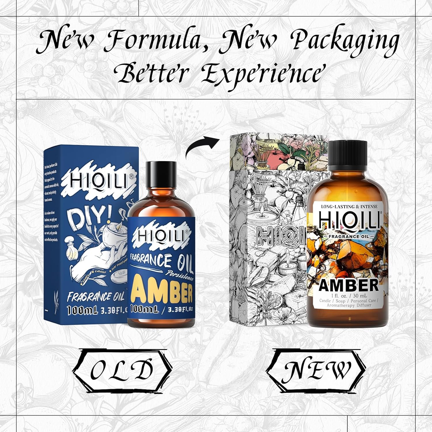 HIQILI Amber Fragrance Oil for Candle, Perfume, Soap Making, Hotel Scents for Essential Oil Diffuser & Aromatherapy - 1 Fl Oz