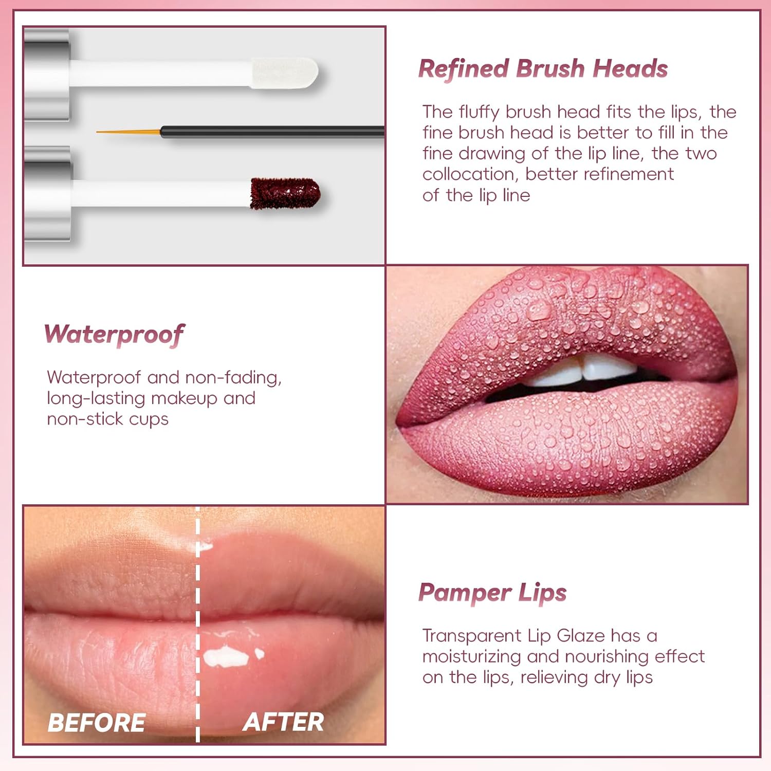 - Waterproof and Long Lasting: With this tearing lip glaze, you can keep your lip makeup for a long time, waterproof and non-sticky, so that your lips always have a good colour and stay elegant and beautiful all the time