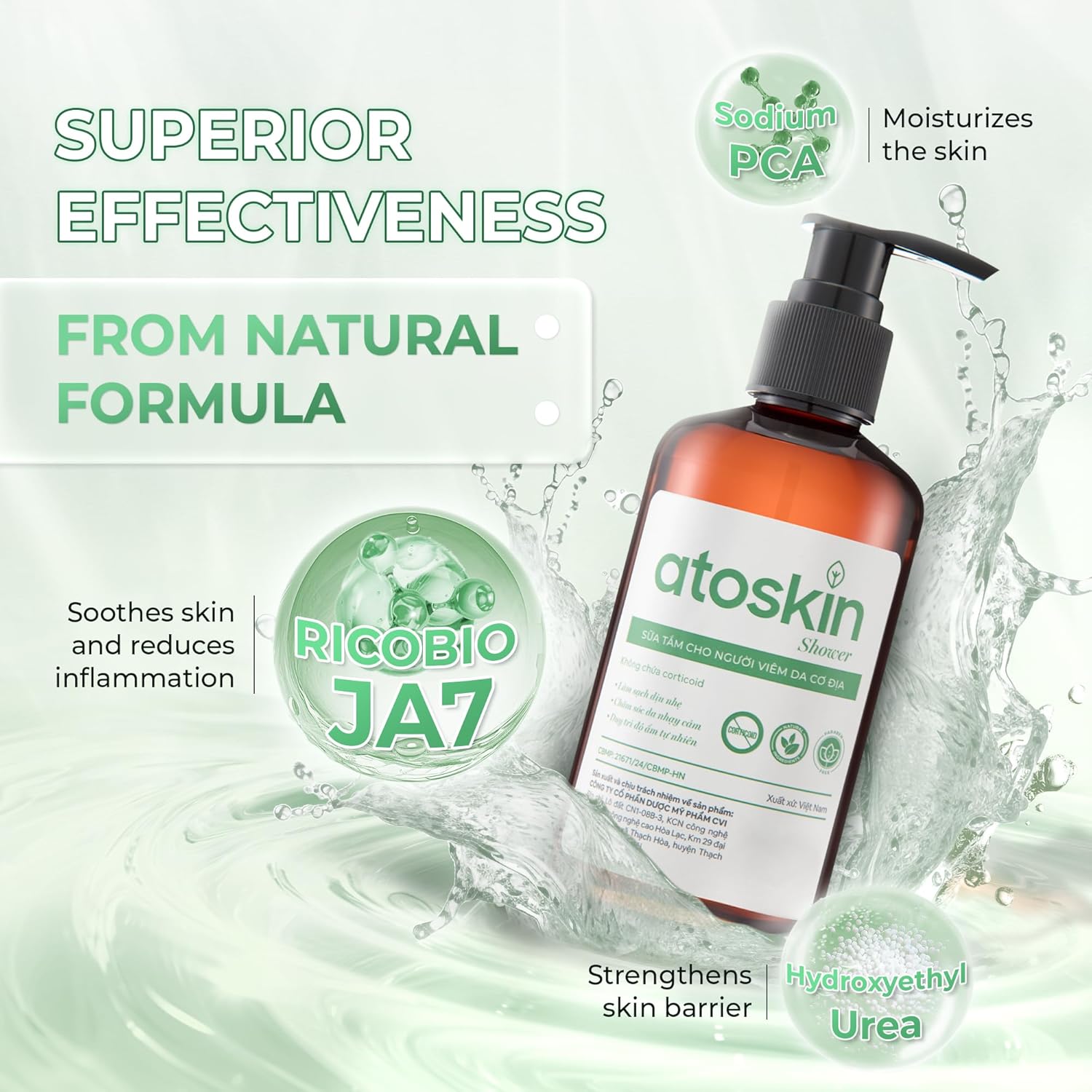 Atoskin Shower Gel (3 Pack) - for Eczema, Psoriasis, Dermatitis, and Anti-Itch Relief - Maximum Strength for Both Kids and Adults (20.4 oz)