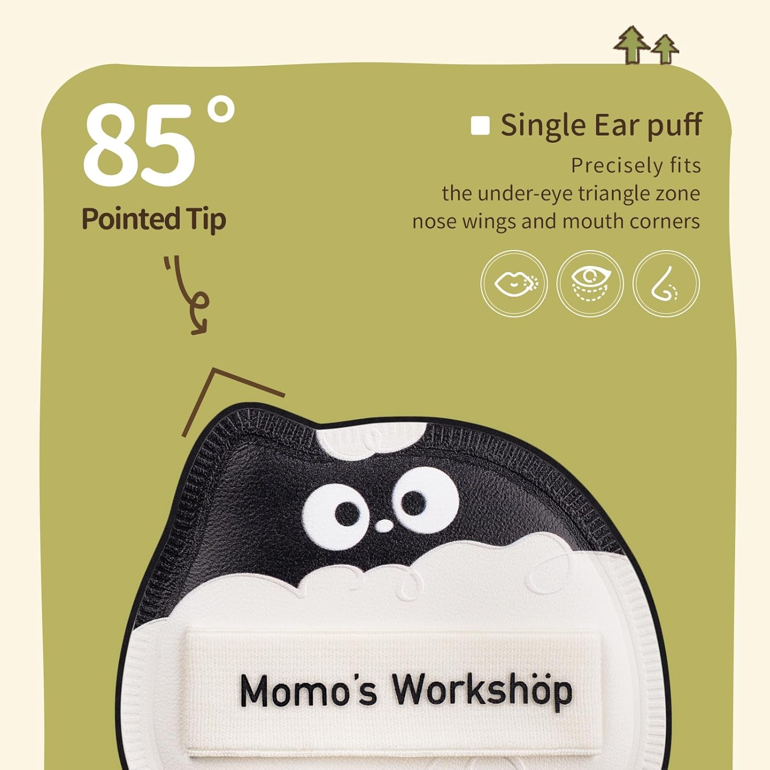 - 【Ergonomic Single-Ear Shape】 This single-ear makeup puff has an angled ear tip that fits the nose and other parts; the flat design allows you to cover your cheeks/forehead in 2-3 strokes.