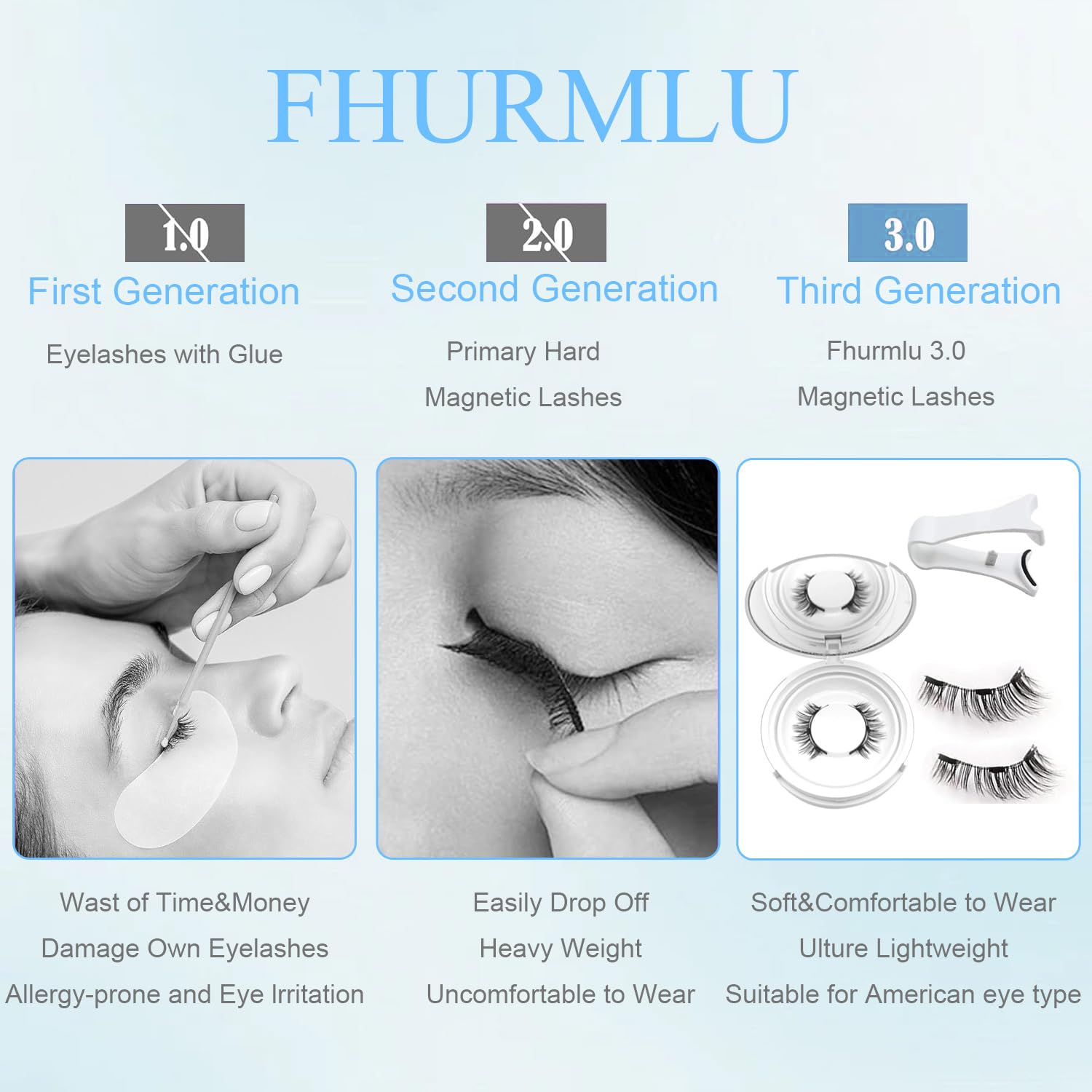 - 【No Glue or Eyeliner Required】 The upgraded magnetic eyelashes technology provides a comfortable wearing experience for people with sensitive eyes. Say goodbye to the mess of glue for beginners with this magnetic eyelashes kit. The magnetic design ensures a secure fit without the need for lash glue, so you don't have to worry about your eyelashes falling off! The eyelashes magnetic lashes can be easily matched with any cosmetics without eyeliner, specially designed for lazy people