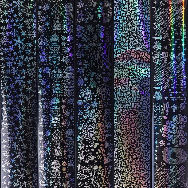 Christmas Nail Foil Transfer Stickers 10 Rolls Silver Snowflakes Skull Nails Stickers White Bunch Nail Foils 1 Box Colorful Starry Sky Paper Nail Decals Christmas Nails Art Sticker Nails Art Decals